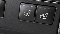The climatised seats improve ride comfort and reduce transpiration thanks to a pleasant air flow and selectable seat heating. Fans integrated in the seat upholstery uniformly distribute a flow of air in three intensity levels under the leather backrest and cushion covers. The air flows through the fine perforation and quickly cools the surface of the seats to a pleasant temperature – even if the vehicle has been heated by an intense amount of sunlight for a longer period of time. On cold days you can turn on the three-level adjustable seat heating.