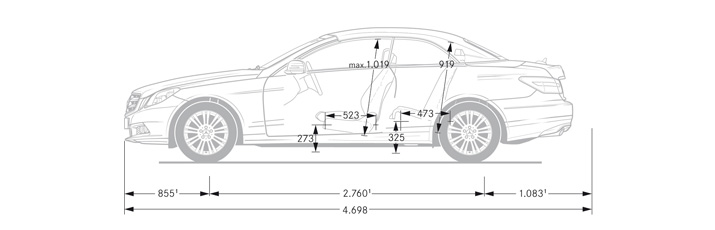 The dimensions, shown in mm, are average values for the unladen, standard equipment vehicle.