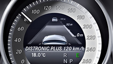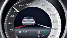 DISTRONIC PLUS proximity control helps the driver to maintain a specified (timed) distance from the vehicle ahead when travelling at speeds of 0 to 200 km/h. With the new Steer Assist the system helps the driver stay in lane, primarily by monitoring lane markings and, at lower speeds, the vehicle in front. Implementing BAS PLUS Brake Assist in conjunction with the PRE-SAFE® brake system helps to avoid rear-end collisions more effectively. If radar sensors identify a potential collision and the driver applies the brakes, BAS PLUS is primed to apply a brake force commensurate to the situation and available stopping distance. In the new E-Class the BAS PLUS function has been expanded to include for the first time crossing objects and pedestrians, something that is particularly relevant at intersections. | |