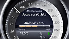 The ATTENTION ASSIST function is particularly helpful on long journeys and when driving at night; the system warns the driver if it detects signs of failing attention and increasing weariness. At speeds of between 60 and 200 km/h, ATTENTION ASSIST warns the driver visually and audibly as soon as it detects any signs of drowsiness or inattention. | |
