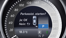 Active Parking Assist helps the driver when searching for a parking place and when parking. With its ultrasonic sensors the system can detect whether a lengthways or side-on parking space is large enough. Active Parking Assist makes a major contribution to safe and comfortable driving. It helps drivers find suitable parallel and perpendicular parking spaces and helps them to park and to leave a parking space by active steering and brake interventions. The integral PARKTRONIC warns of obstacles in front of the vehicle and behind. | |