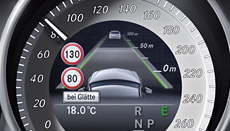 | | Traffic Sign Assist, road sign recognition and display of speed limits in instrument cluster This expanded system is based on the existing Speed Limit Assist system. The traffic signs are recognised optically by a camera system installed behind the windscreen.