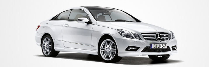The sporty appearance of the new E-Class Coupé is capped off by the AMG sports package. From the outside it is evident in the AMG front and rear apron, the side skirts and the high-sheen 18-inch AMG 6-twin-spoke light-alloy wheels. The AGILITY CONTROL sports suspension, the speed-sensitive sports steering, the large perforated brake discs and the brake callipers with Mercedes-Benz lettering are not just visual highlights. The models with V6 or V8 engines come with a twin-pipe exhaust system with chrome-plated tailpipes.