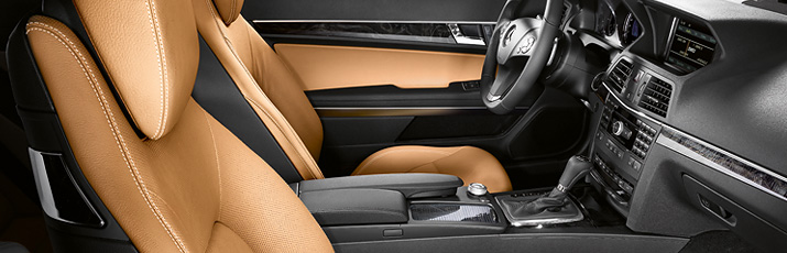The quality and dynamic visual impact of the optional AMG sports package continue in the interior. It includes multicontour seats in ARTICO man-made leather for the driver and front-passenger seats with distinctive lateral support (leather and nappa leather available as options) plus the AMG 3-spoke sports steering wheel in nappa leather. Steering-wheel gearshift paddles are also included in the AMG sports package in conjunction with the automatic transmission. The brushed stainless steel sports pedals come with rubber studs and the floor mats feature "AMG" lettering.