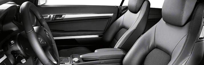 Relaxation and sportiness are combined in the seats of the new E-Class Coupé. The front seats are ergonomically designed and come equipped as standard with NECK-PRO head restraints. Their design provides optimum stability for the driver and front passenger even when a dynamic driving style is preferred. The height and backrest inclination feature electric adjustment as standard. The passengers in the back seats enjoy comfortable upholstery with individual seat design and integrated head restraints. There is an open stowage compartment between the rear seats along with a double cup holder under a rolling cover. The backrests can also be divided when transporting bulky objects.