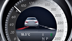 The Parking package helps the driver in tight parking and manoeuvring situations and comes with an innovation: A 360-degree camera system displays the vehicle's surroundings from a bird's-eye perspective on the screen of the COMAND Online multimedia system. Monitoring all four sides of the vehicle makes it easier to judge all manoeuvring situations. It can warn drivers visually and audibly of obstacles in front of and behind the vehicle, helping to prevent damage when manoeuvring. This includes: Active Parking Assist Active Parking Assist uses six ultrasonic sensors in the front bumper and six in the rear bumper to identify suitable parking spaces when the vehicle is travelling at speeds between 0 and 35 km/h. The automatic parking space search function is indicated by a "P" symbol in the instrument cluster. If Active Parking Assist has found a parking space, an arrow appears next to the "P". By default, Active Parking Assist searches for parking spaces on the right-hand side of the road. If the indicator on the driver's side is active, parking spaces on the left-hand side are also detected The driver starts the parking manoeuvring process by stopping ahead of the indicated parking space, selecting reverse and confirming the prompt which appears in the instrument cluster. Active Parking Assist steers up to a speed of 10 km/h. The driver only operates the accelerator and the brake pedal. The parking manoeuvre is completed in a maximum of 5 moves. The final parking move is indicated by the message "Parking Assist complete" in the display. This message is accompanied by an acoustic signal.< For the first time the E-Class furthermore offers the functions automatic parking and leaving a parking space with active steering and brake intervention as well as an additional lateral protection against obstacles located to the sides. PARKTRONIC: The system gives visible and audible signals to warn of obstacles it detects in front of the vehicle and behind. It is active up to a speed of about 16 km/h. ![]() | |