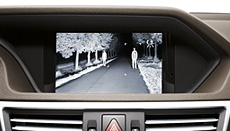 The optional Night View Assist Plus function helps the driver by reducing the danger of overlooking dangers when visibility is bad. The system works with infrared headlamps and an infrared camera which transmits an image as a clear grey-scale image which is shown in the central display of the COMAND APS multimedia system. Pedestrians can be automatically identified and highlighted in the display. With this option, it is easier to identify people, animals and objects even when visibility is poor. | |