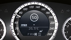 The (optional) PARKTRONIC electronic parking aid monitors the front and rear of the vehicle when manoeuvring by means of sensors and warns the driver if there is a risk of collision. If the system identifies an obstacle, it provides a visual signal. Should the distance drop below approx. 35 cm, a short warning sound is emitted. If the vehicle approaches even closer (to less than approx. 25 cm) a continuous signal is heard. PARKTRONIC uses this procedure to make parking safe, even with limited space available. Parking Guidance helps the driver, not only when parking, but also when looking for a parking space. Because the ultrasonic sensors measure the length of parking spaces parallel to the car automatically at vehicle speeds of 30 km/h or less. If a suitable space is found, Parking Guidance then provides precise directions regarding the correct steering angle as well as the turn-in and turn-back points. | |