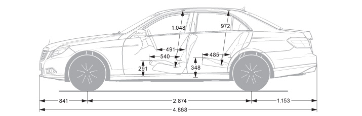 All measurements in millimetres. The dimensions shown are mean values and apply to standard-specification, unladen vehicles.